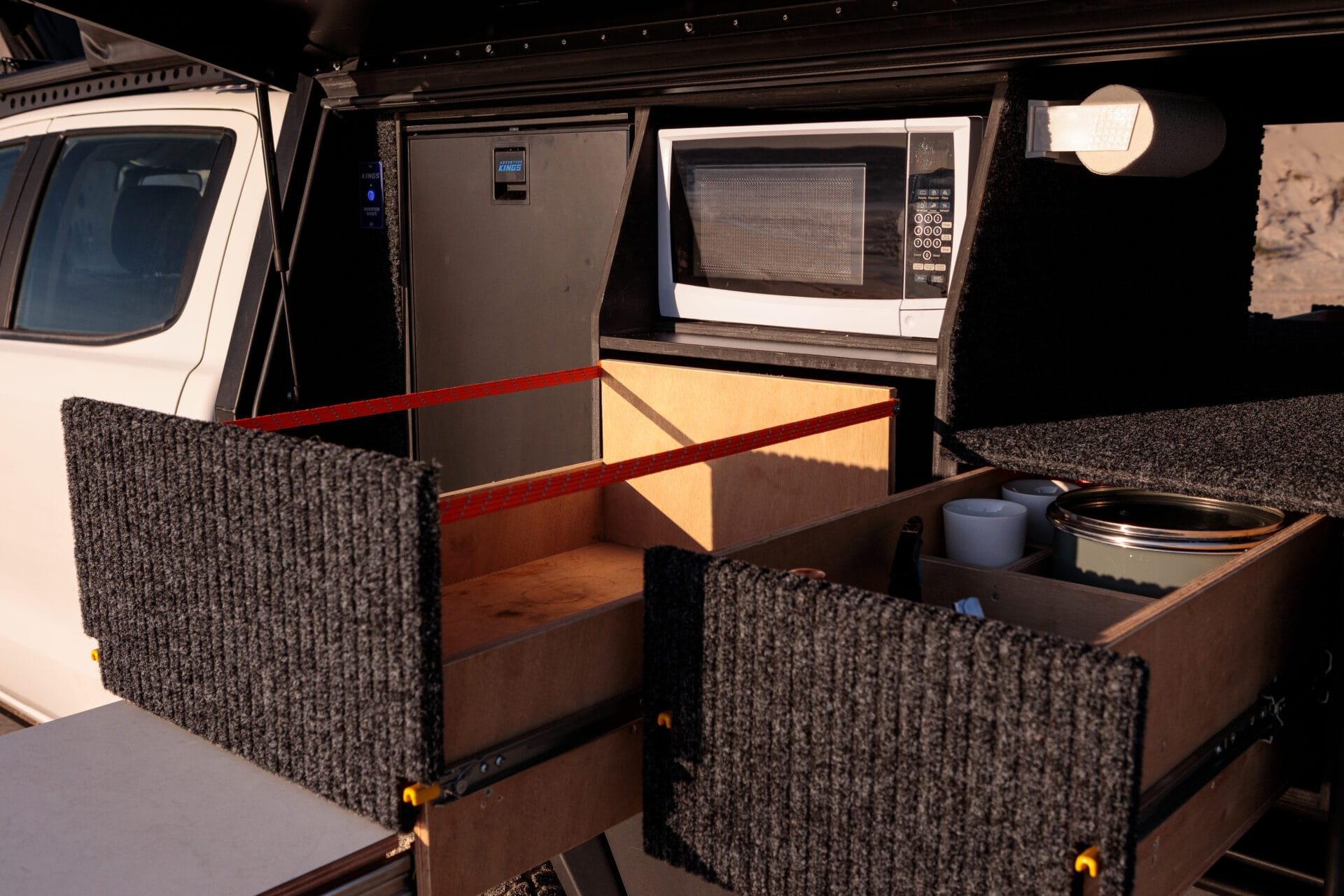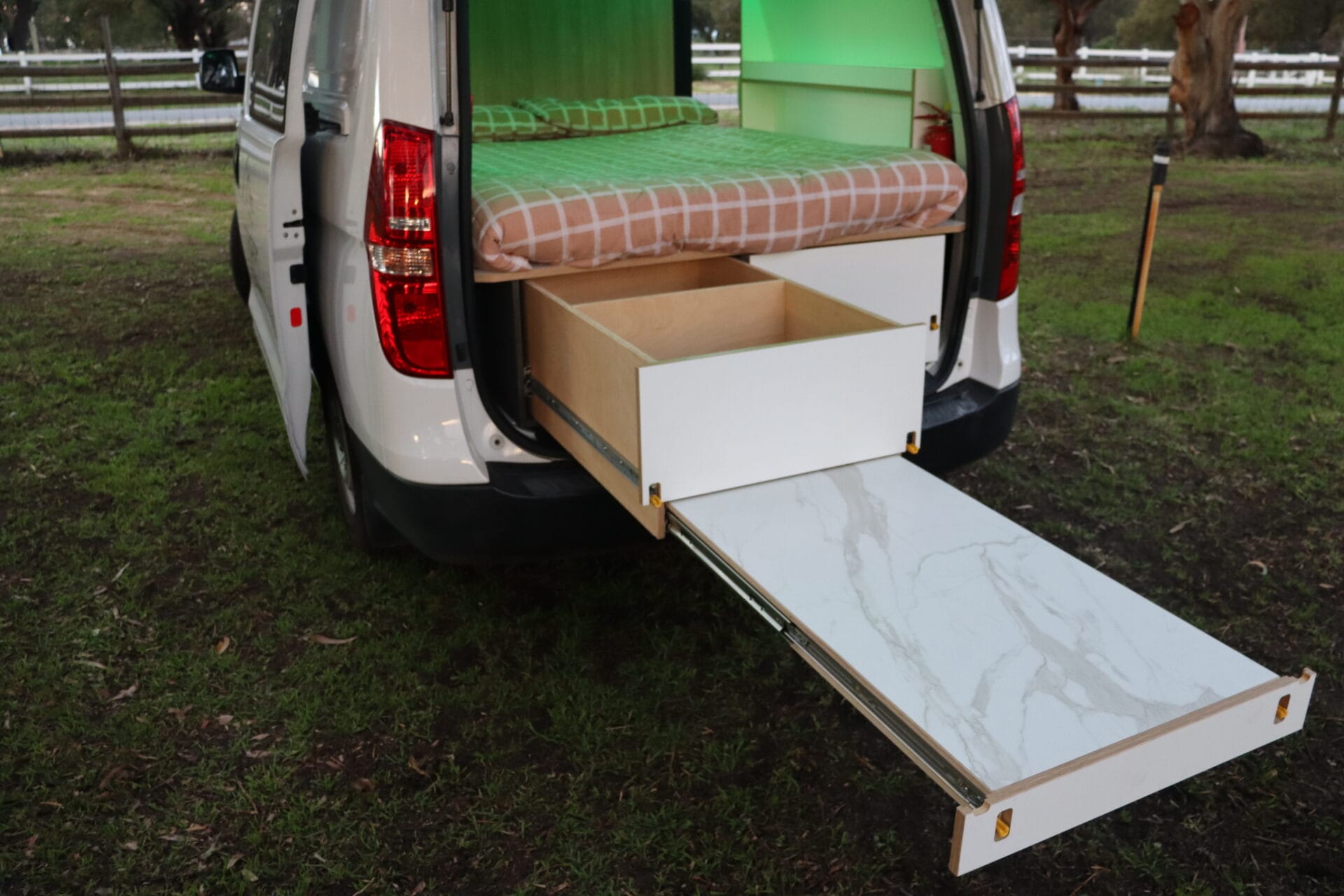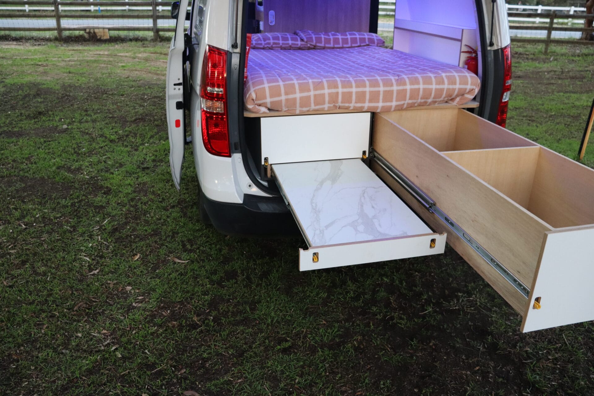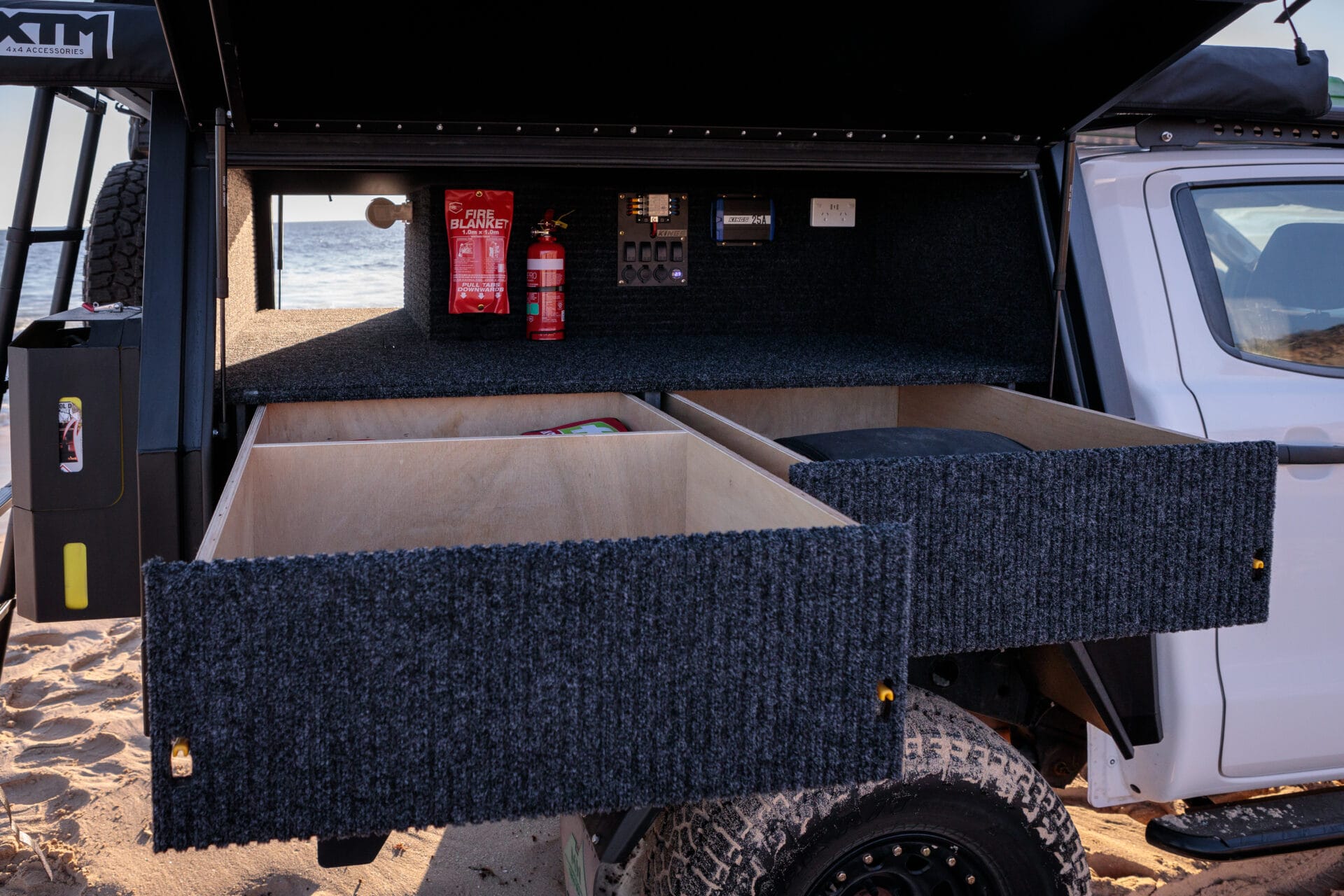- Car Drawers: Keep your essentials organised and easily accessible, maximising space in your camper with 4WD drawer installation.